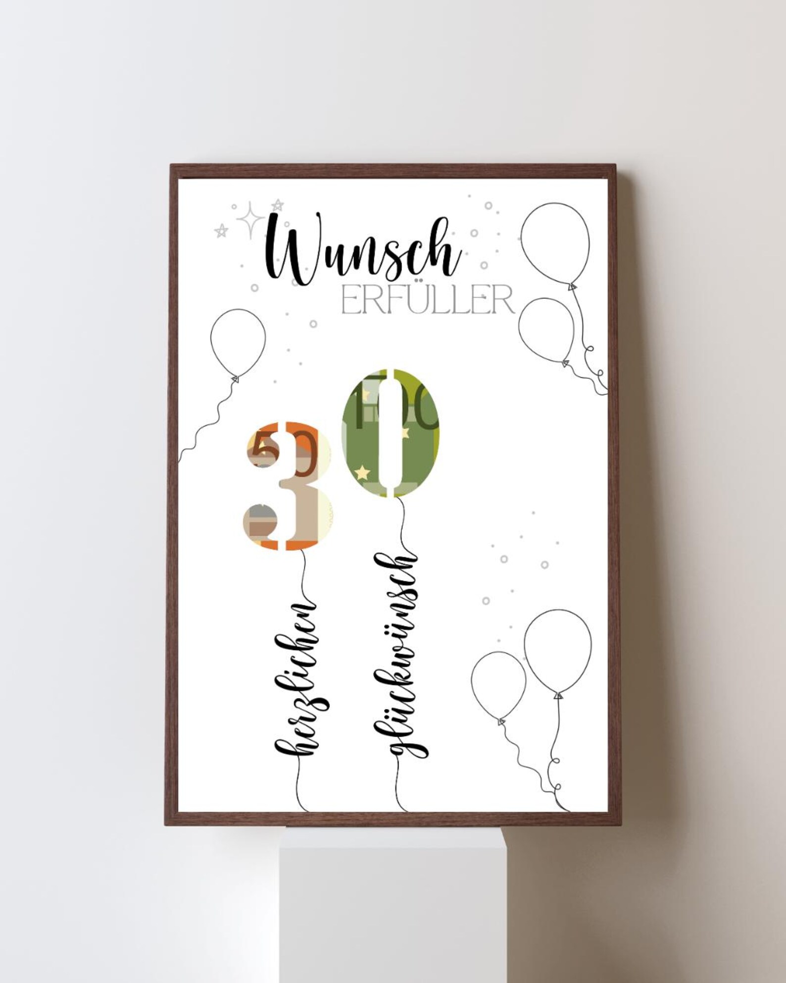 Geldgeschenk 30. Geburtstag PDF – Vorlage zum Ausdrucken – Last-Minute Geschenkidee – DIY Druckvorlage – Digitaler Download A4