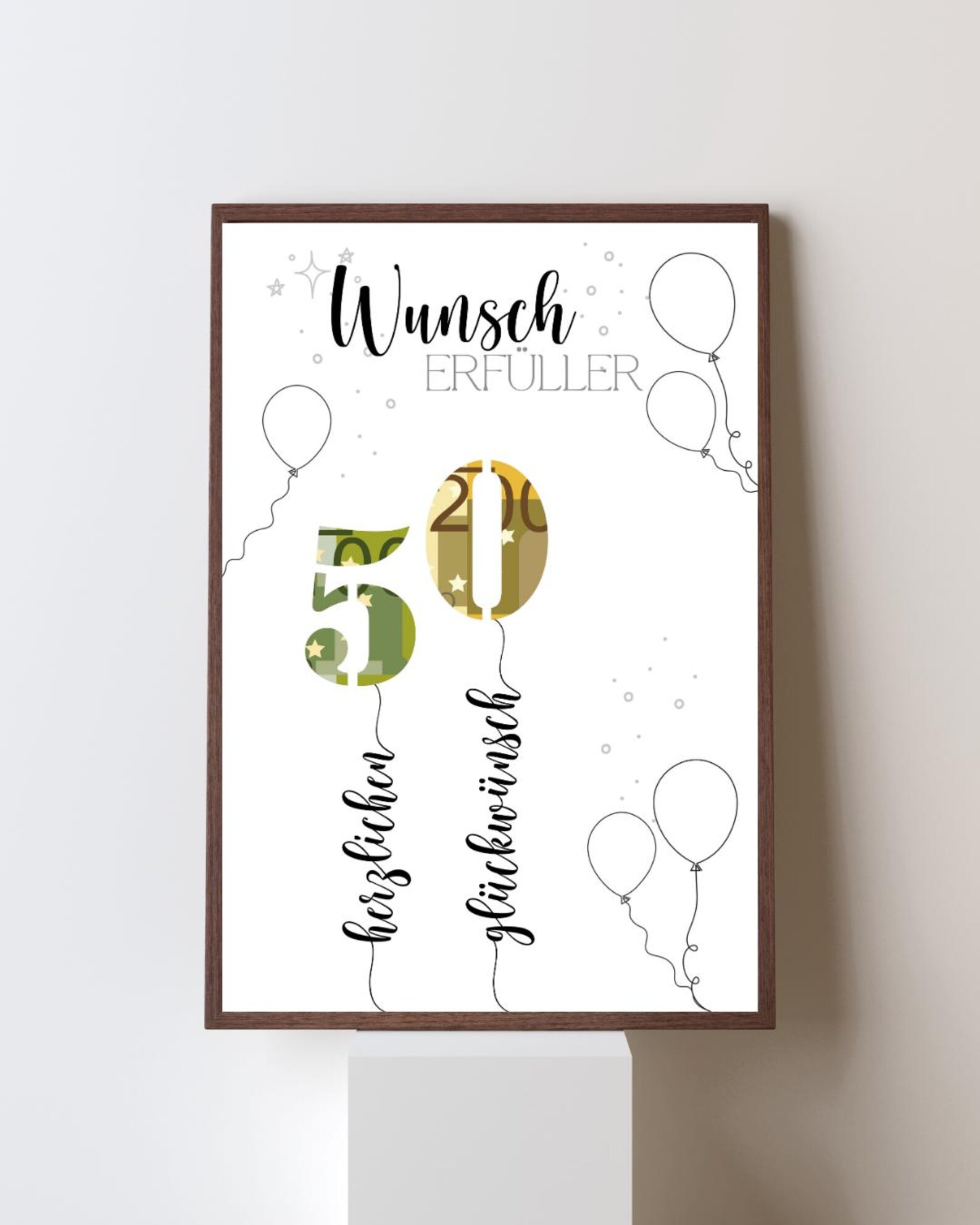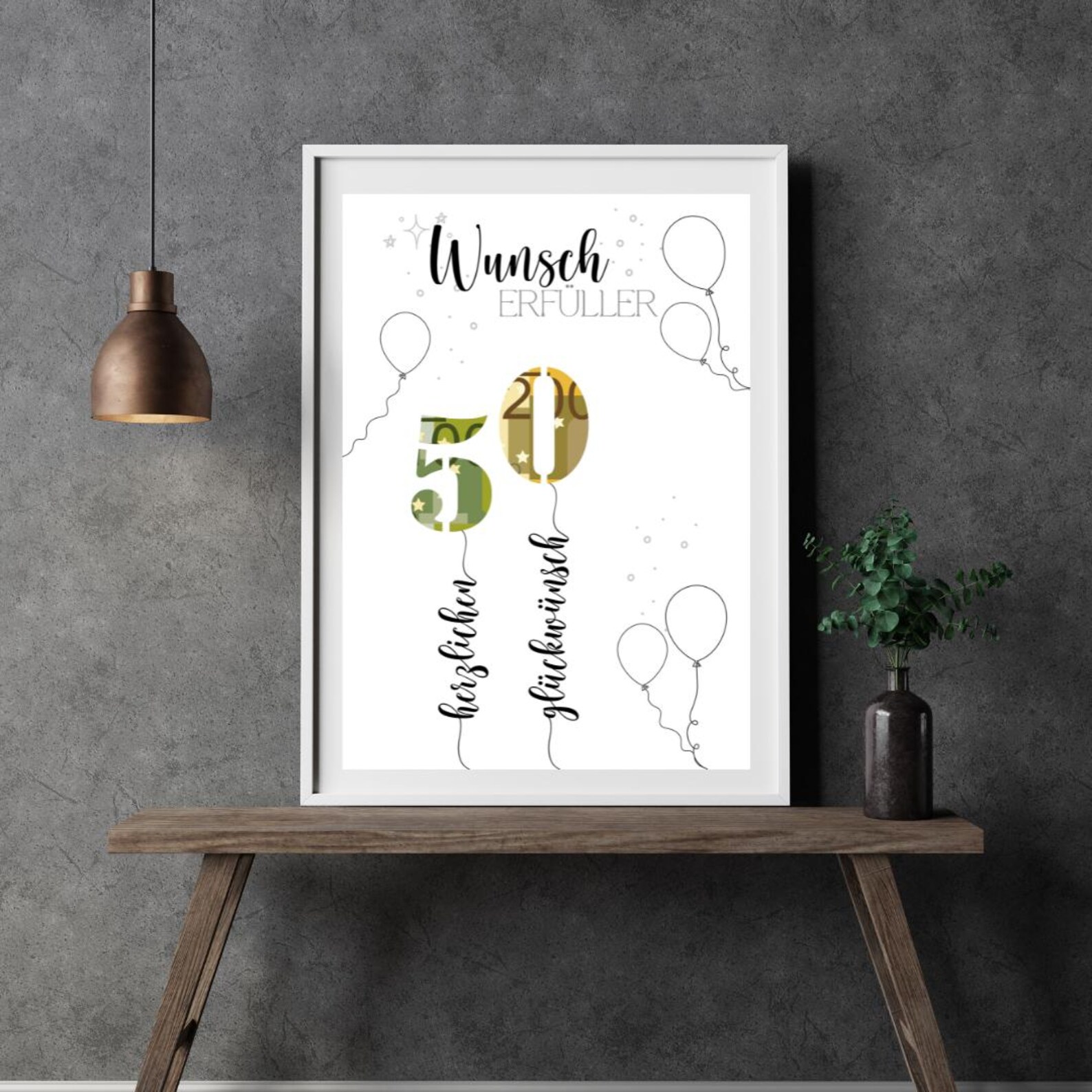 Geldgeschenk 50. Geburtstag PDF – Vorlage zum Ausdrucken – Last-Minute Geschenkidee – DIY Druckvorlage – Digitaler Download A4