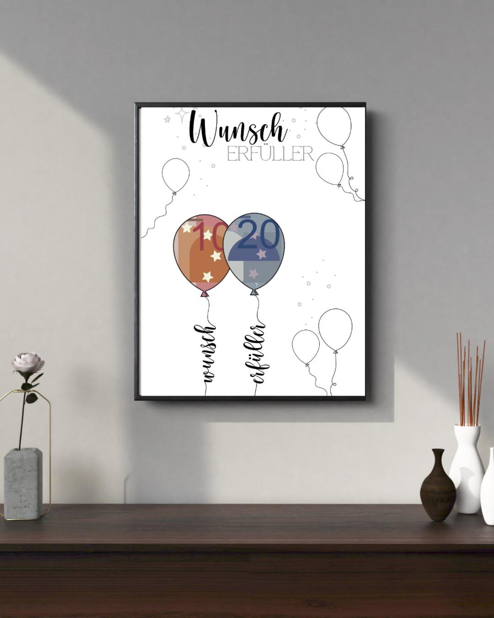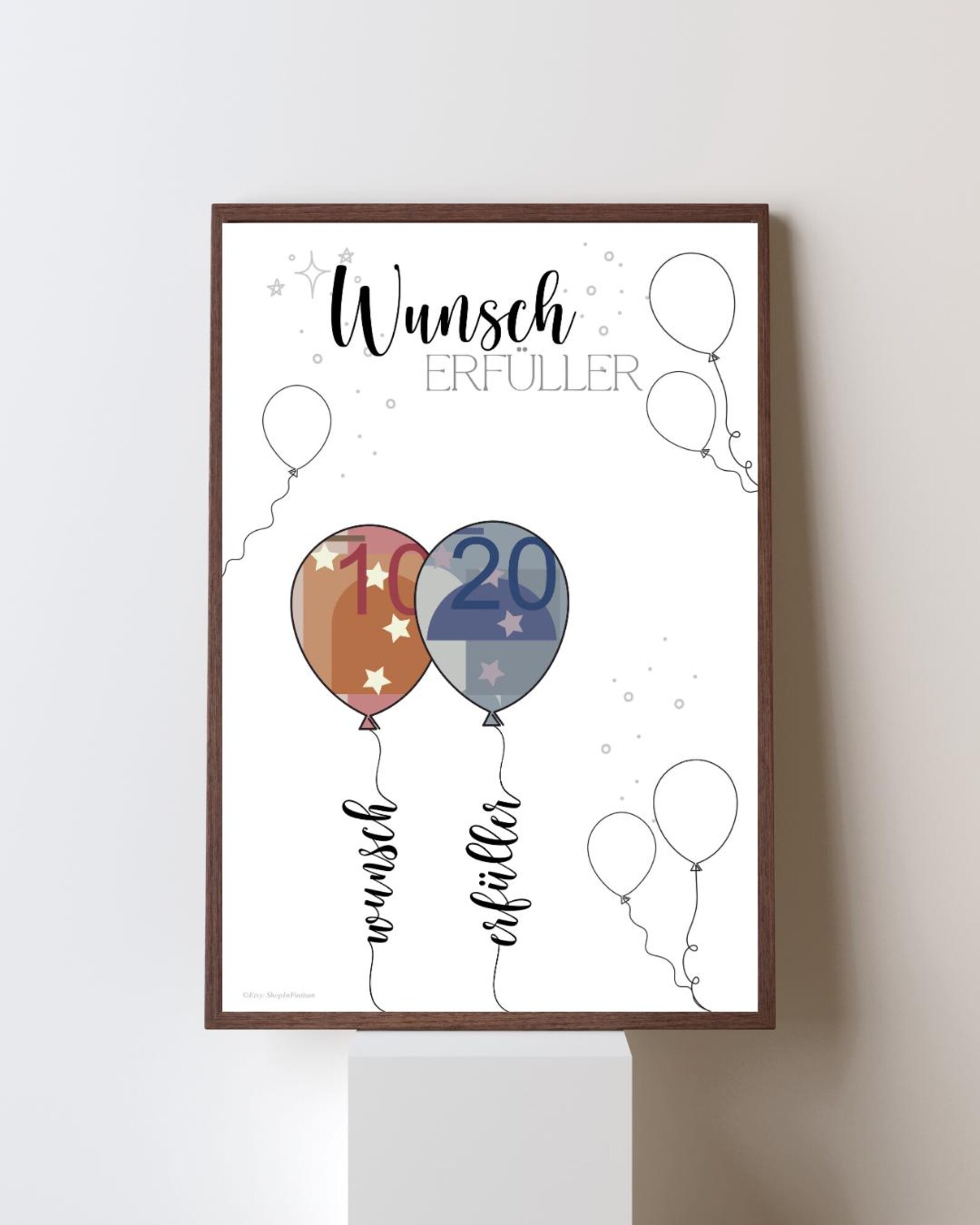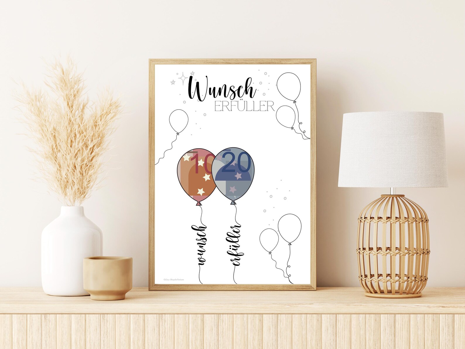 Geldgeschenk Wunscherfüller PDF – Ballon Motiv – Geschenkidee Geburtstag – Digitaler Download zum Ausdrucken – DIY Vorlage