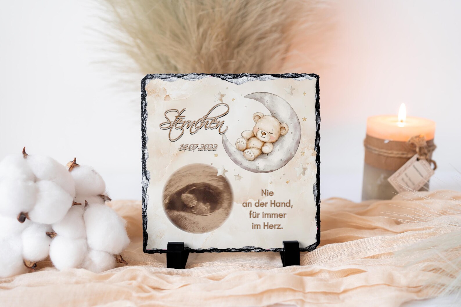 Schiefertafel, Schieferplatte, Erinnerungstafel, Grabschmuck, Grabstein, Grabdeko, personalisiert, Foto und Wunschtext, wetterfest